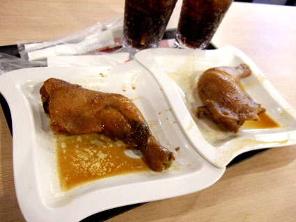 這是蓉妹子和包子點的油雞腿,飲料搭配的是可樂.