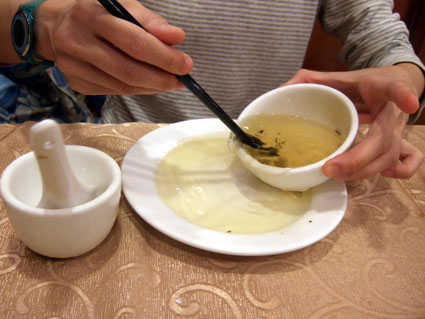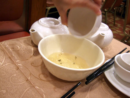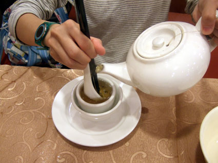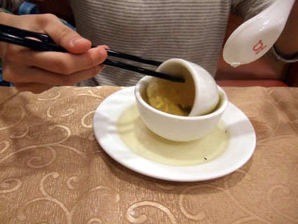 包子說,第一泡茶不是用來吃的,而是用來燙碗筷的,