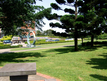 順著主幹道往前行,最後我們選擇停在渴望會館前,因為這兒有桌椅,旁邊即是大草地,