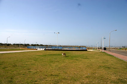 而格子狀的馬路間有著一片片的寬闊草皮,
