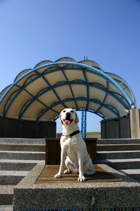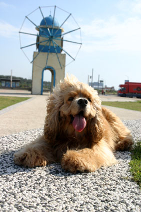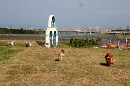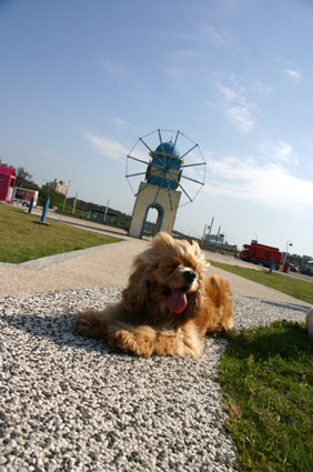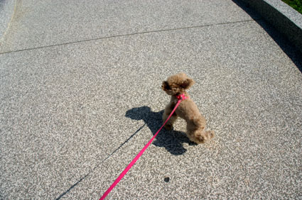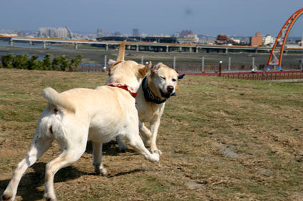 看到這樣爆笑的狀況,只好把小狗牽起,以免小狗像草球一樣隨風翻滾~