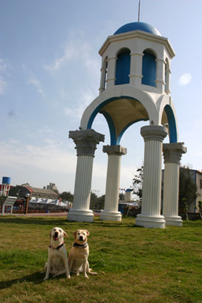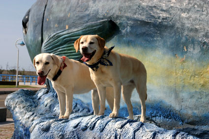 看著笑盈盈的香蕉姊妹花,我想到有朋友跟我說,很少人能夠為狗"犧牲",因為我假日都帶著她們出遊.