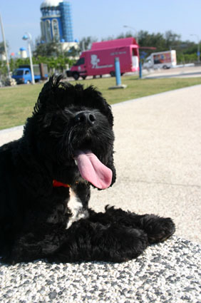 陽光下的嚕嚕,還是很黑,