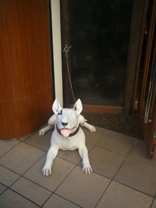 這是另一家咖啡廳的大門側邊,居然也綁了一隻假狗這.
