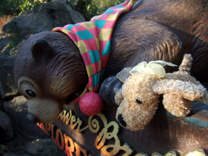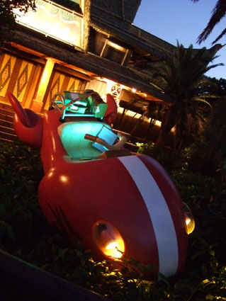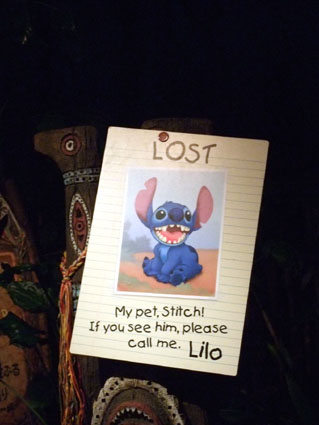 結果,轉個彎就看到史迪奇在和木柱玩耍~哈!