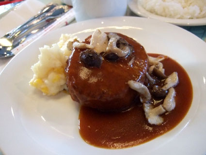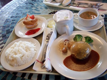 我們隨便找一家餐廳鑽進去,挑上熱騰騰的漢堡套餐~