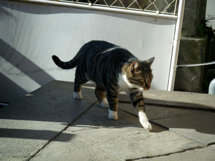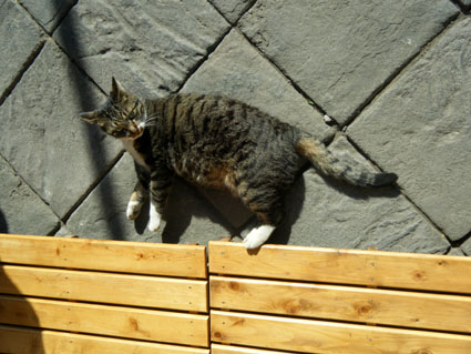 這隻白底花貓一直享受著陽光,專注到不想理我們~