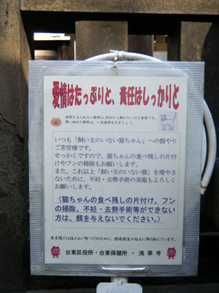 神社的入口處旁,還有一個告示,請民眾負起責任為自家貓狗作絕育手術.