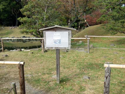 庭園內有庚申堂鴨場和新錢座鴨場兩座獵鴨場,分別建於1778年(安永9年)和1791年(寬政3年)。獵鴨場是由3米的土丘圍繞的水池和樹林,土丘上種植的常綠樹和竹子將獵鴨場與外界隔斷,使得鴨群可以在其中休憩。從池邊挖有幾條淺壕,狩獵時從細縫中觀察鴨的動向,用穀物將鴨引向淺壕,再伺機用網兜從隱蔽處將鴨捕獲。