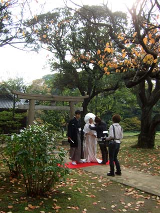 公園內還有個小神社,這天,還遇上了一對新人穿著傳統服飾在拍照呢!!
