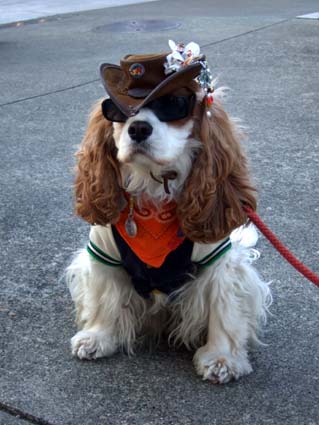 原來,是一隻打扮盛裝的查理士小獵犬吸引了眾人的目光,相機手機對著他拍個不停~