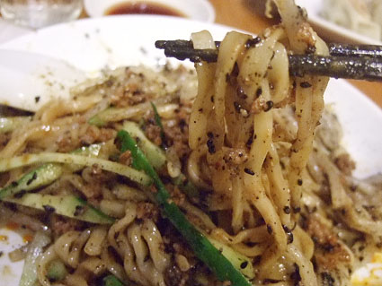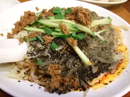 這是黑色涼麵,雖然都是以芝麻做為主角,但吃起來跟麻醬麵的味道差別很多,是另一種口感~