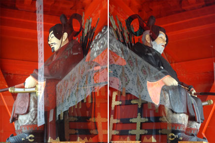 於門樓下的這兩位,不像其他神社前守門的是神獸,雷神,或是千里眼和順風耳之類的,