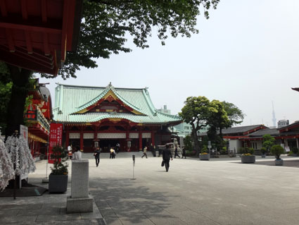 站在入口的門樓前,會覺得這個神社是隱身在一群大樓間,而且從前方觀看,會完全想不到裡面的腹地有多大.