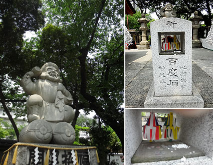 百度石算是參拜的起點,當人們有事向神佛祈願,就雙手合十,一說是圍著百度石繞走百次,或是反覆入口到拜殿、正殿去參拜,再回到入口一百次,就會心想事成.