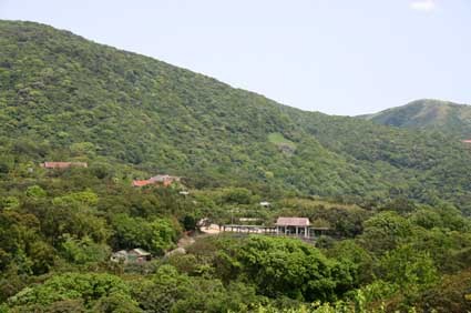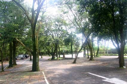 終於到達第二停車場了。我們停車的地方,是選擇一過取票亭的右手邊的一個位置。因為車子必須在一棵棵樹中間停擺,直的斜的,而且綠蔭遮天,所以我稱這為「樹林停車場」。