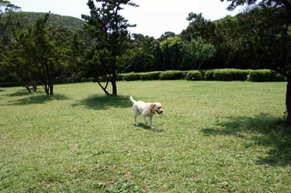 但是大狗的舌頭和隨著舌頭晃動而恣意飄散的口水,一直打斷我們的悠閒時光@@