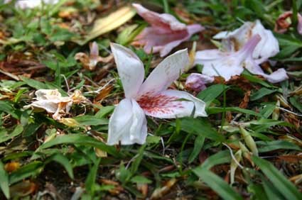 從滿地的落花看的出來,這顆花樹曾經有過的繽紛燦爛。
