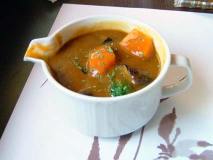 在門口的立牌上寫著,他們的咖哩是先將洋蔥炒成咖啡色後,加入蘋果泥,以及以多種蔬果、雞骨所熬製的高湯,再投入香料一同燉煮數小時之後,還要靜置一整夜讓咖哩完全入味後,才算完成.恩~ 看來頗花功夫,真是讓人迫不及待地想開動.