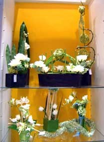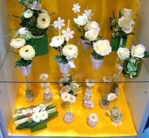 這是一家專門都是賣小花飾的廠商,一個個經過搭配的人造花盆,擺在桌上一定很好看吧!!