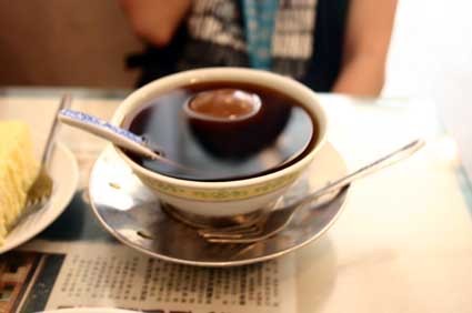 這碗黑黑的甜湯叫做--桑寄生雞蛋茶.