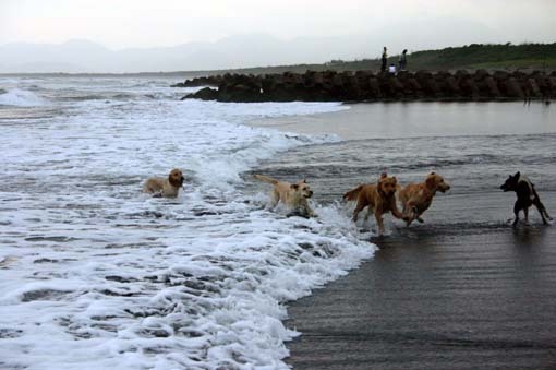 正好遇上漲潮時分,一波波的放席捲而來,不過,狗子們一樣玩得High透了.