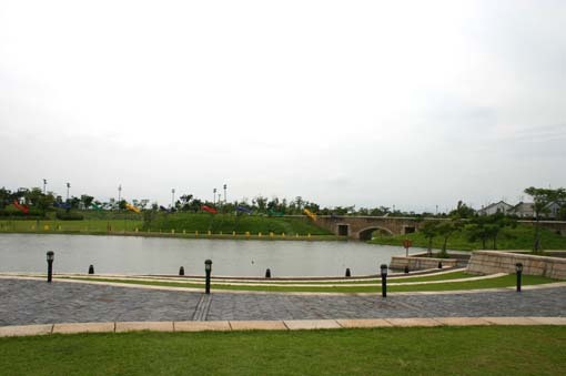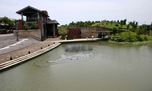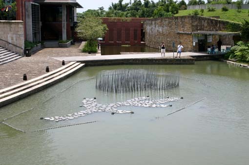 水面中那個刺刺的金屬玩意兒,應該是裝置藝術吧?仿的應該是蘆葦和蓮葉嗎?