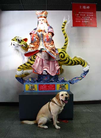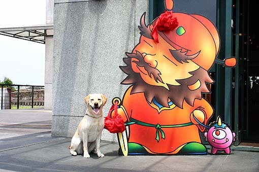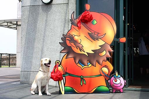 因為不確定是否可以牽狗進入,所以,我們和門前的鍾馗大爺拍拍照就好!!而且,這位鍾馗大爺也牽個寵物,還是個口愛的粉紅色獨眼小怪!讚喔!