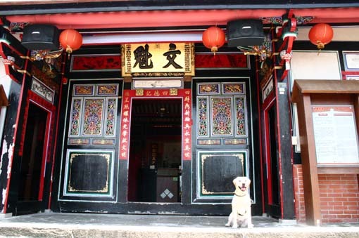 正廳大門前上有掛個匾額,寫著文魁.我知道斑斑不愛讀書,但起碼可以拍照裝裝樣子!!呵!