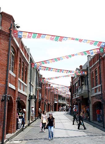 這是南窯商店街,特殊連續拱形的紅磚建築造型,讓我們忍不住先來拍個幾張!