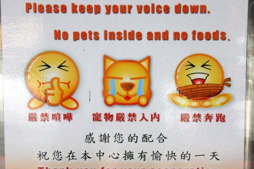 戲劇館是園區內少數禁止帶寵物進入的場所之一.但是,招牌上的圖示相當可愛.