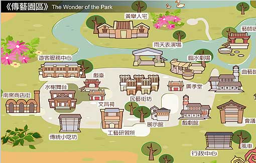 這是傳藝中心的全覽圖,再沒來過之前,我還真不知道原來傳藝中心有24公頃這麼大,以為頂多只是個一兩棟化中心的建築物而已!這回的拜訪,讓我又再次深深體會到宜蘭縣政府對於觀光事業發展的用心!