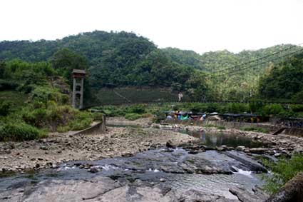 走完吊橋,發現除了收費的營地和陡峭的小路外,並沒有什麼地方可以比較容易地下到河邊。