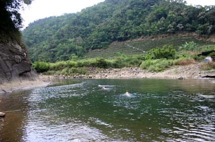 這一潭平靜的溪水,狗子游的可快樂咧!!