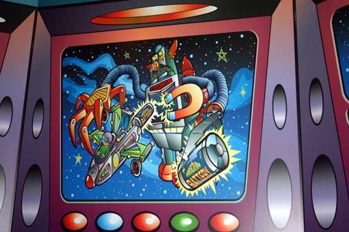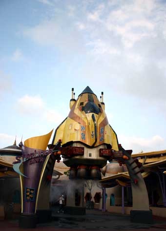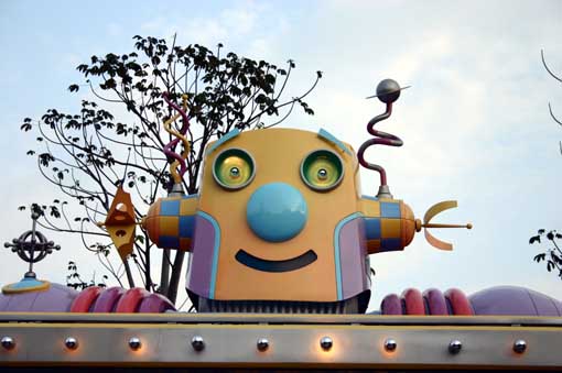 明日世界是以外太空歷險為主題,所以園區中充斥著星球,飛碟,機器人等等.