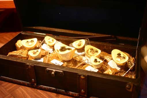 這這這...米老鼠元寶和金條裝在箱子內,好像海盜的寶藏,黃澄澄地閃的人刺眼!!