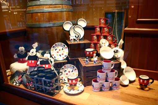 這是迪士尼的餐具,有各式的馬克杯和盤子.