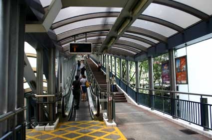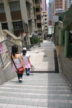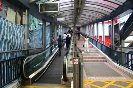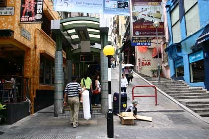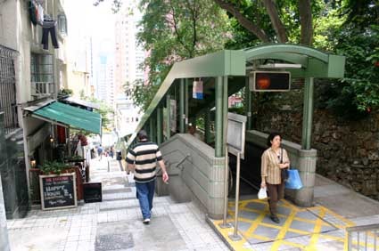 首先尋找的目標,就是長800公尺,一路往上爬至半山的自動手扶梯.