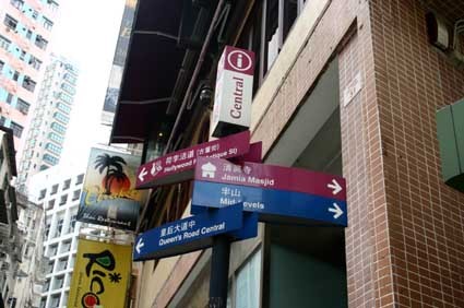 對了,這次到香港,我發現在重要的路口,都會有這樣提供訊息和方向的指標,對遊客來說是很方便的一個設計.