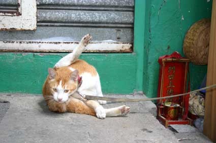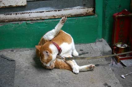 忽見一隻貓!還是隻由店家養的貓,因為脖子上的項圈限制了他的行動.