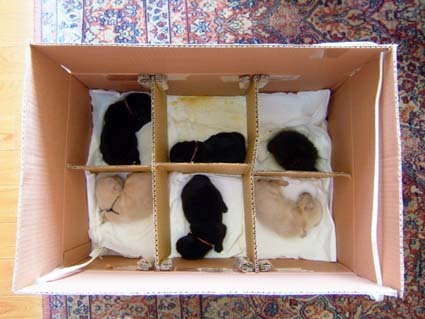 乾燥、舒爽的紙箱可保新生幼犬不失溫。