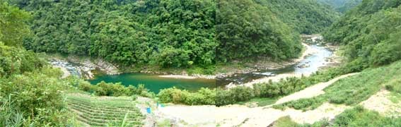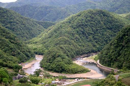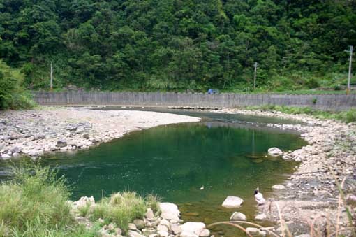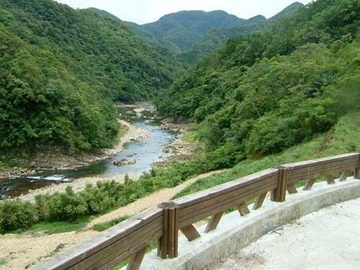 水泥步道走到末端,則出現一個半圓形的水泥平台.從此處往下望,是墨綠色的溪谷.