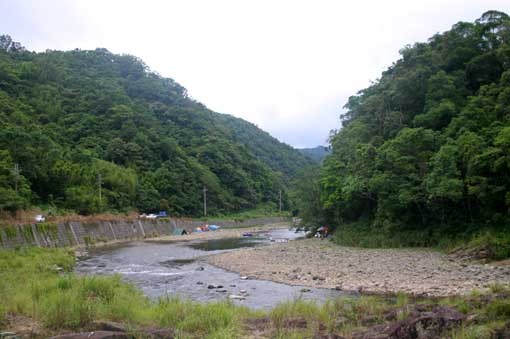 往溪上游看,這兒也有些三三兩兩的遊客在戲水和露營,不過並不似露營區或熱門旅遊點一般地人潮洶湧.