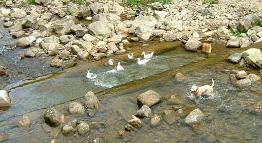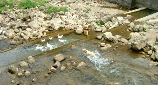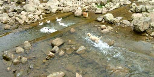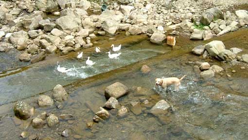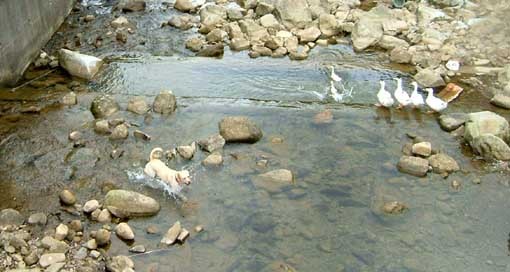 很明顯地,斑斑這傢伙只是玩玩,追一追鴨子,(還是因為俗辣不敢追遠??),
