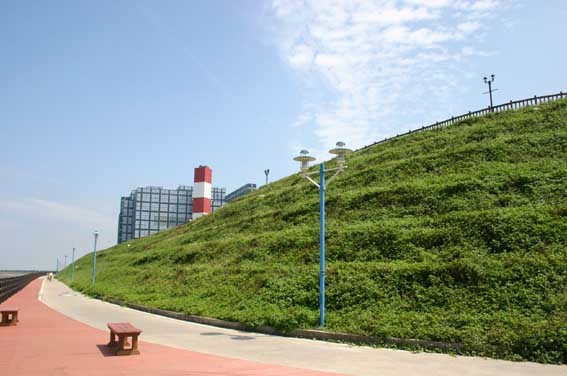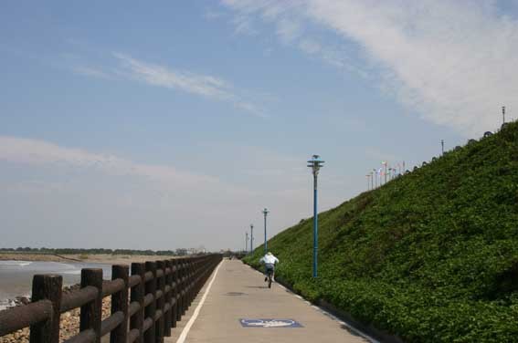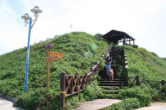 頂著大太陽,我們如苦行僧般地悶著頭,沿著自行車道一直往前走.殊不知,海天一線區正在我們的左側上方.