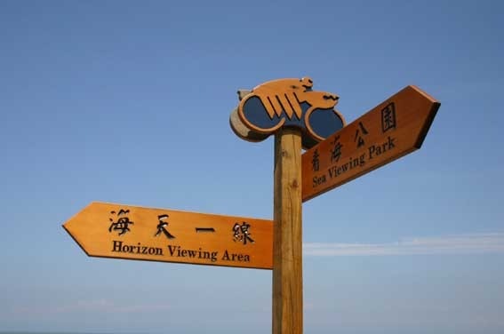當步下了階梯,發現了另一塊指示牌,告訴我們前方就是有名的海天一線.