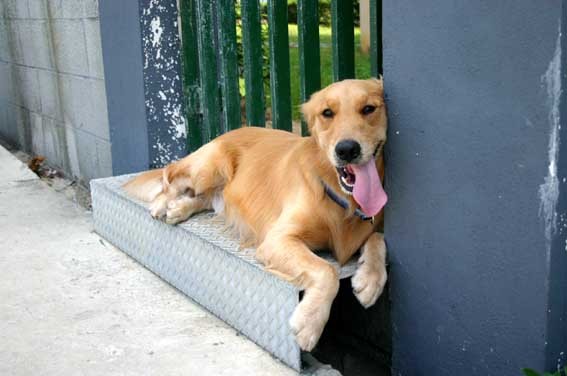 一時間,為娘的尖叫著,殷殷盼著狗子們即刻回神.只是,除了斑斑回頭外,被游泳念頭沖昏頭的橘子,以及跟隨著娘子私奔的阿球,仍專注地衝下階梯,奔往心目中的遊樂場.