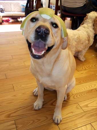 既然是中秋,讓斑斑帶個香柚帽子是一定不能少的啦!!