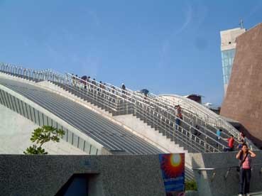 看著博物館門口長長高高的階梯,看著很多很多的人潮,牽著三隻狗的我們決定.... 拍拍照就好,人狗快閃....
