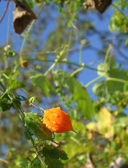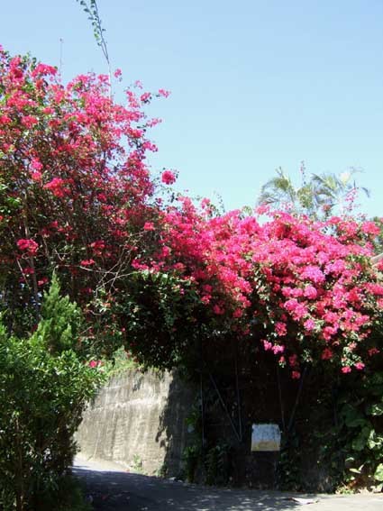曬柿場的大門是一大簇令人驚豔的桃紅,旁邊還有著前一晚剛盛開的曇花。